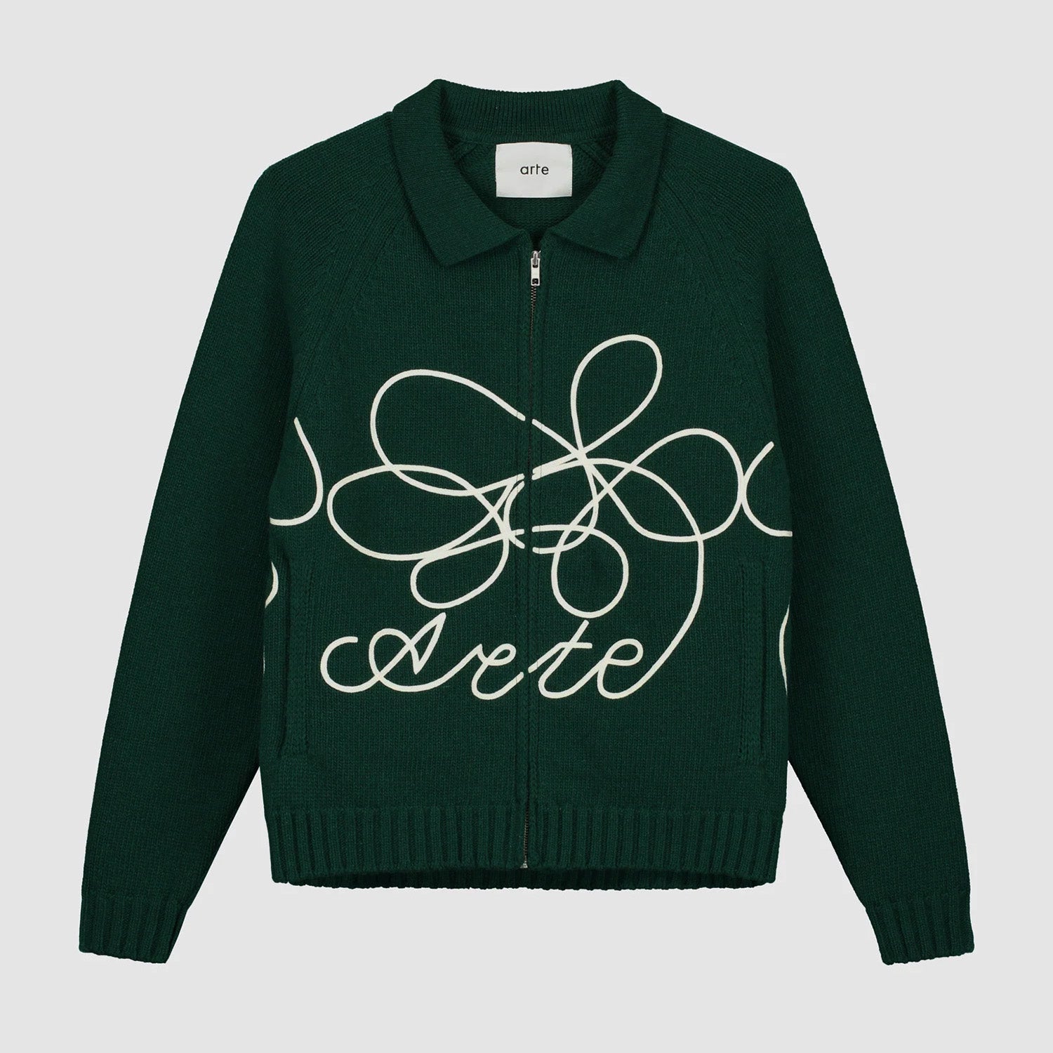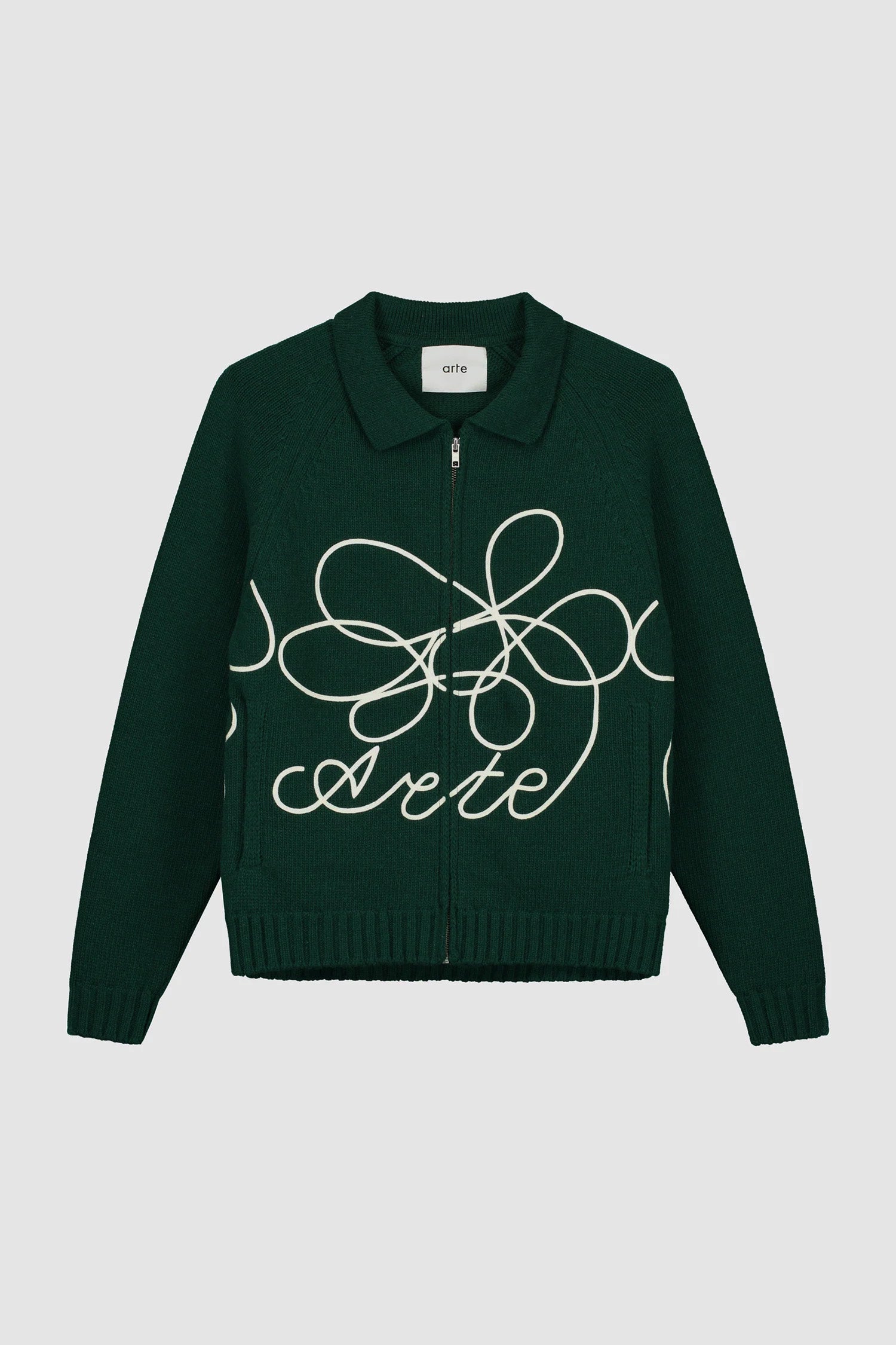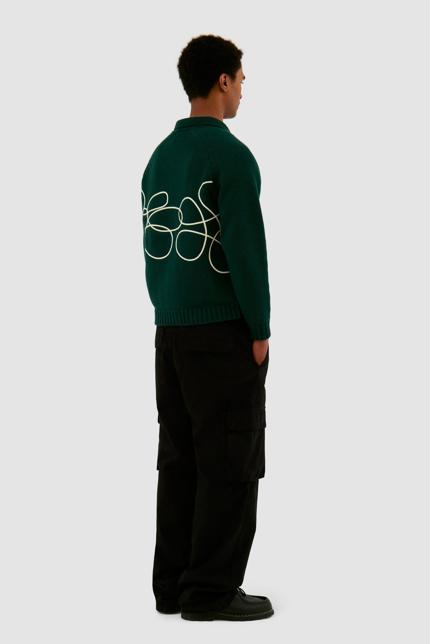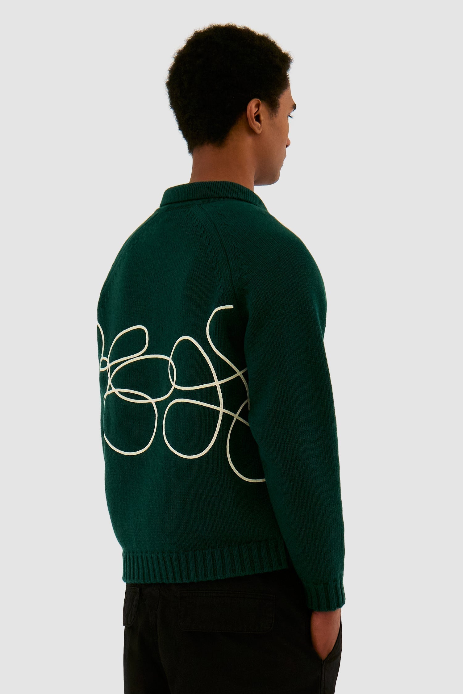 Fabriqué à partir d’un mélange de laine de haute qualité, le pull en maille vert avec logo Flower est orné d’un cordon brodé qui s’enroule autour de tout le corps. Il présente une coupe ample avec un corps légèrement plus court et est équipé d’une fermeture éclair intégrale ainsi que de deux poches latérales.