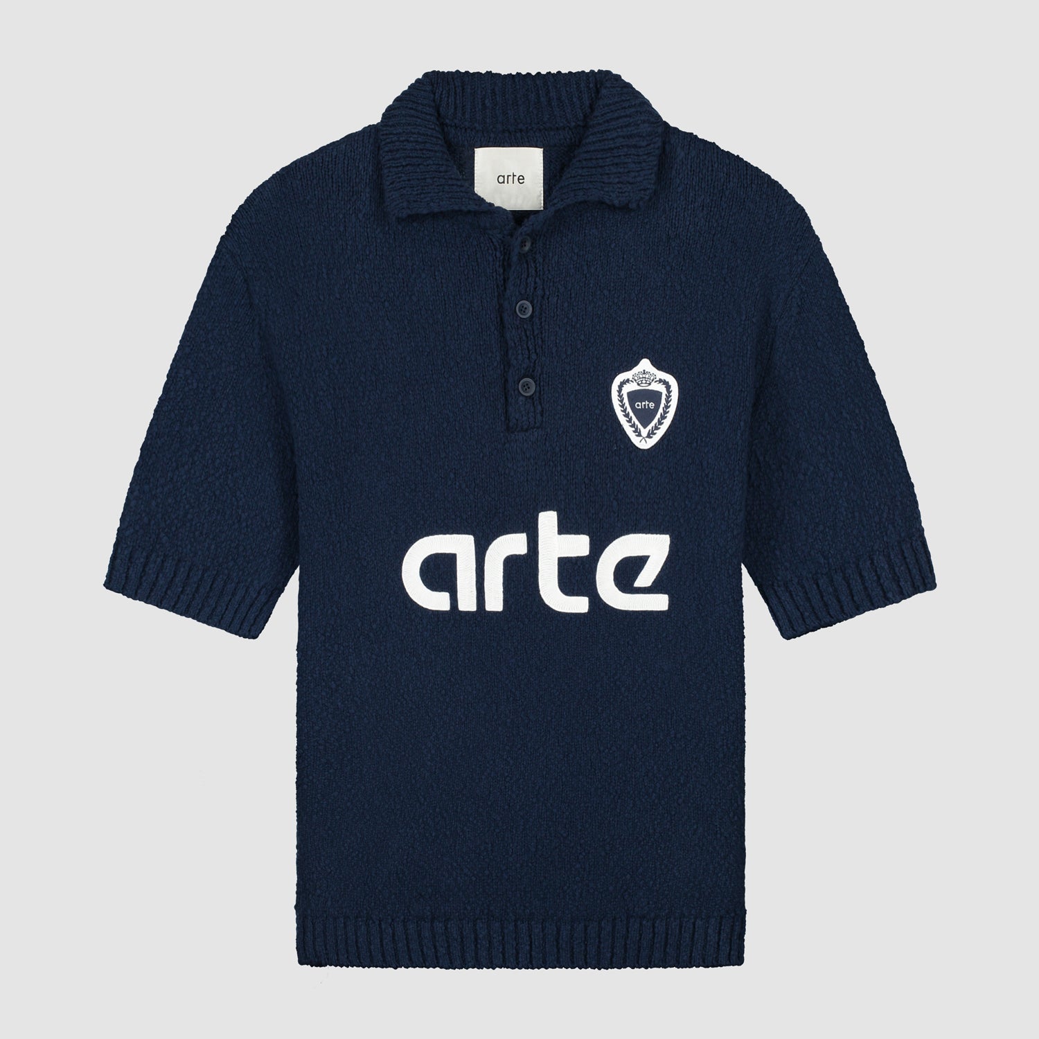 Fabriqué à partir d'un mélange de coton de qualité supérieure, le tricot Football en bleu présente une version athlétique du logo Arte brodé sur le corps. Le polo tricoté est complété par un écusson athlétique brodé sur la gauche de la poitrine.